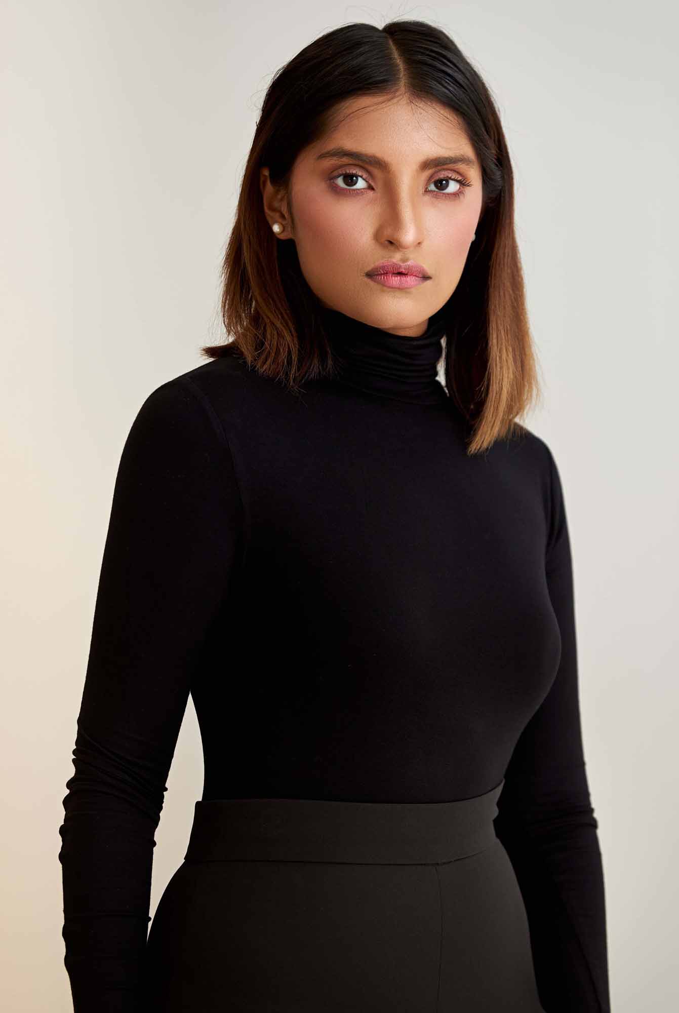 Channel the refined glamour of Marilyn’s style with this wardrobe staple piece. This finely knitted blouse with figure-hugging fit and a high roll neck, is the perfect companion to any layering style to transform your seasonal outfit with a sophisticated note.