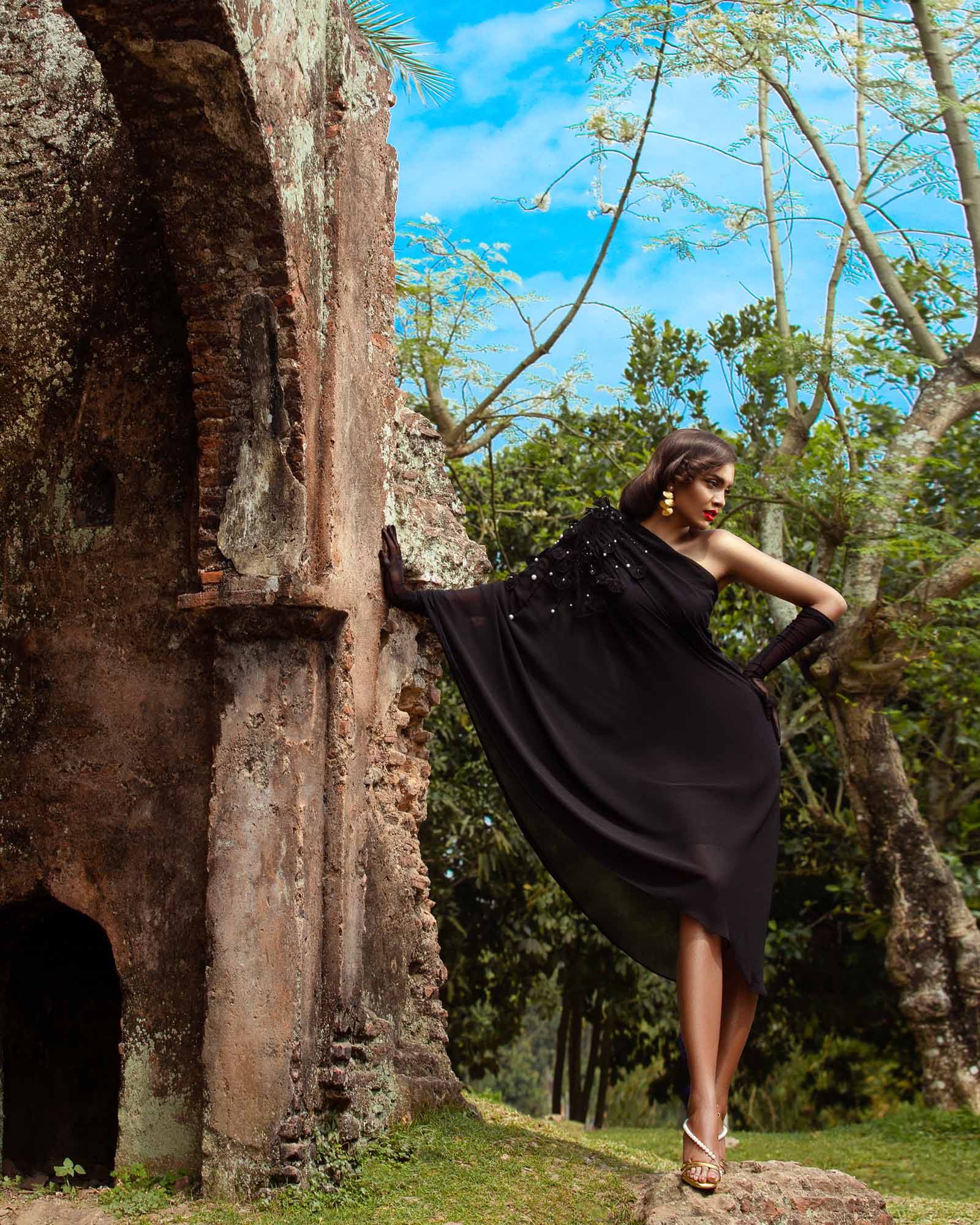 Team with our metallic sandals & cascading shell earring to channel a demurely sultry aesthetic.